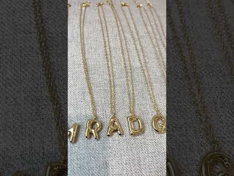 Crafted with a brass base, this necklace is then coated with a radiant 18K gold plating, providing the warm luster of gold. The centerpiece of this captivating necklace is the charming balloon initial pendant, featuring an oversized, puffed letter design that's both whimsical and chic.