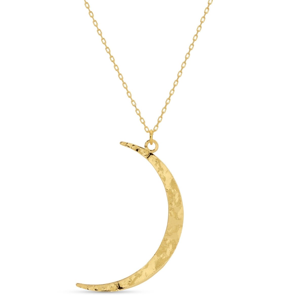 Illuminate your style with the celestial charm of our Gilded Moon Crescent Necklace, a versatile piece that captures the serene beauty of the night sky. Crafted with a unique hammered texture, this crescent moon pendant reflects light beautifully, creating an organic, artisanal feel. Available in an 18k gold plated finish or a sleek, silver-inspired rhodium plating, this necklace is designed for effortless layering or as a standout solo piece. Whether you're drawn to the warmth of gold or the cool radiance of rhodium, this celestial jewelry essential adds a touch of bohemian elegance to any look, making it a perfect gift for yourself or a loved one.