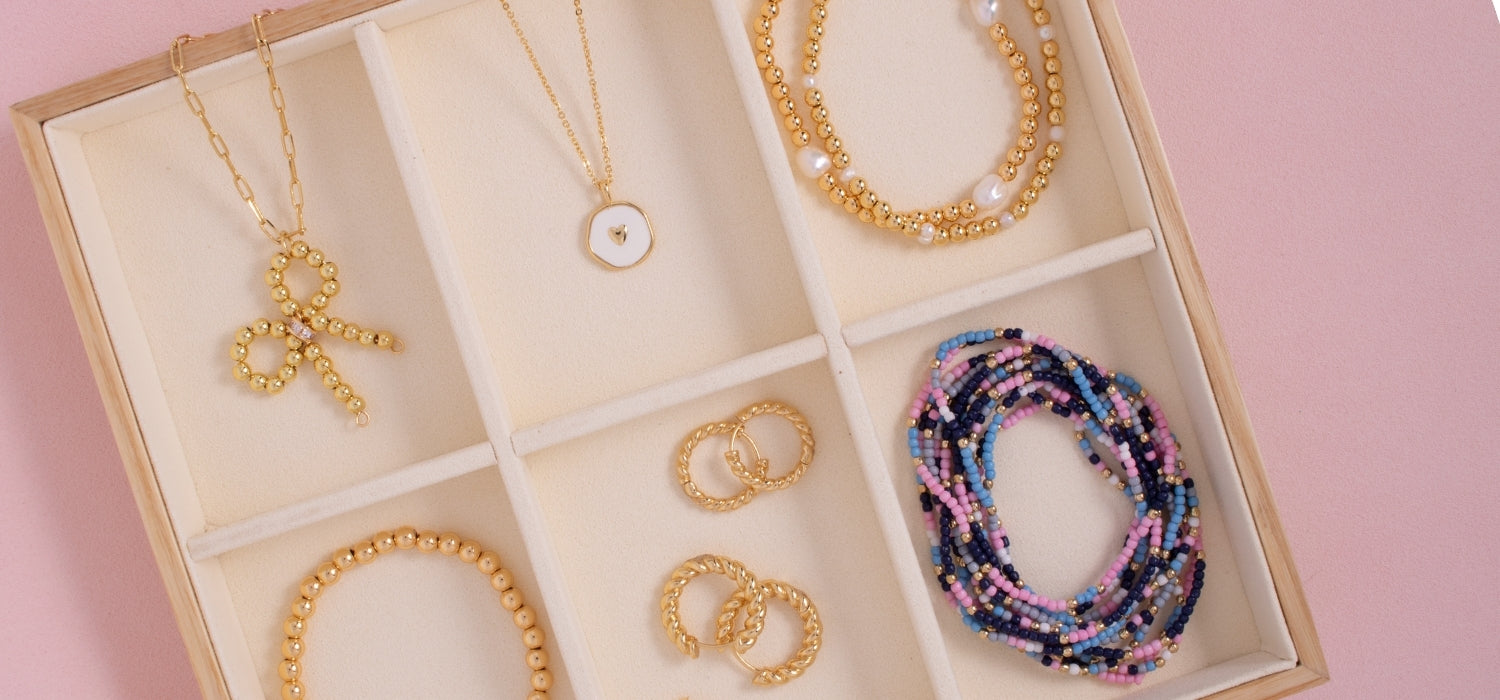 Our curated collection features timeless heart-shaped pendants, personalized initial jewelry, and delicate gold-plated necklaces that effortlessly complement every style and every age. Crafted to look luxurious without the high price tag, our jewelry is perfect for everyday wear, meaningful gifts, and layering your favorite looks.